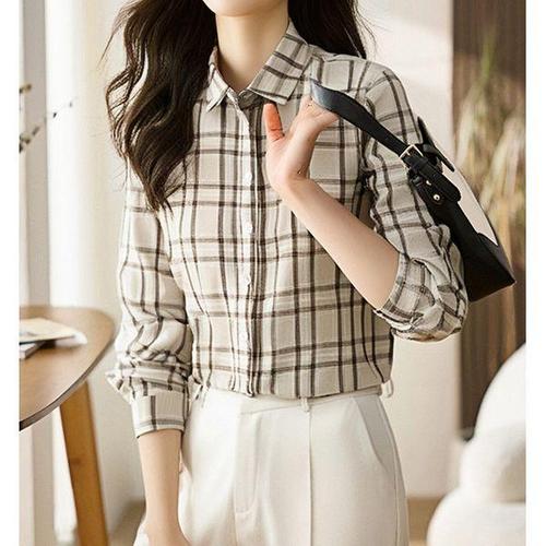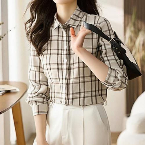 [패션시그널] 베이지체크패턴 셔츠블라우스 34E30D