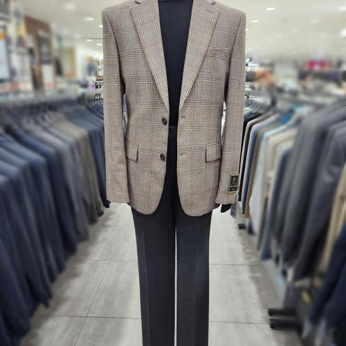 [트루젠]베이지 하운드체크 스판 기본핏 남자 비지니스 캐주얼 자켓