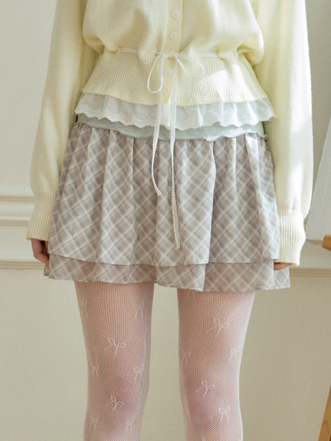 [핑크파인애플] PICNIC CHECK TIERED SKIRT_BEIGE