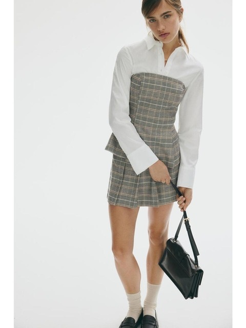 [에이치엔엠] 플리츠 스커트 베이지/체크 1296093003