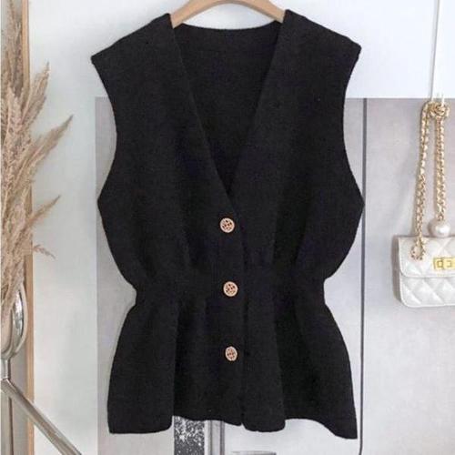 [다잇템_패션]여성용 핀턱 스웨터 금색단추 베이직 베스트