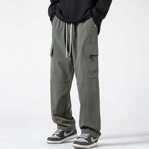 SMOPIG 남자 와이드 팬츠 순면으로 만든 두툼하다 춘추 캐주얼 바지 내마모성카고바지 널찍하다 드리움