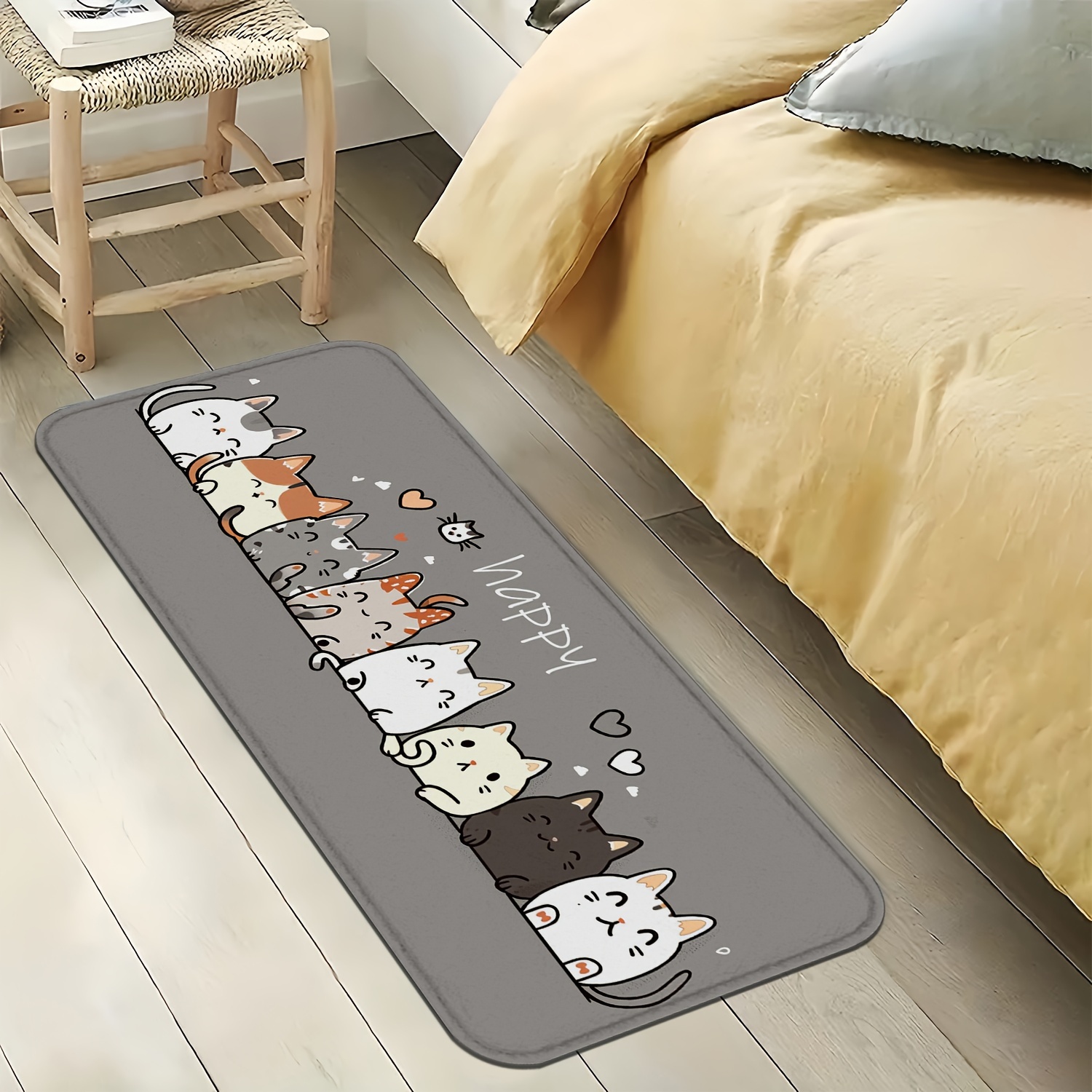 TEMU 귀여운 고양이 패턴 미끄럼 방지 러그 - 흡수성, 세탁기 사용 가능한 거실, 침실, 욕실 현관용 바닥 매트 - 겨울 & 크리스마스용 아늑한 회색 장식 카펫, 1.2cm, , 도어 매트