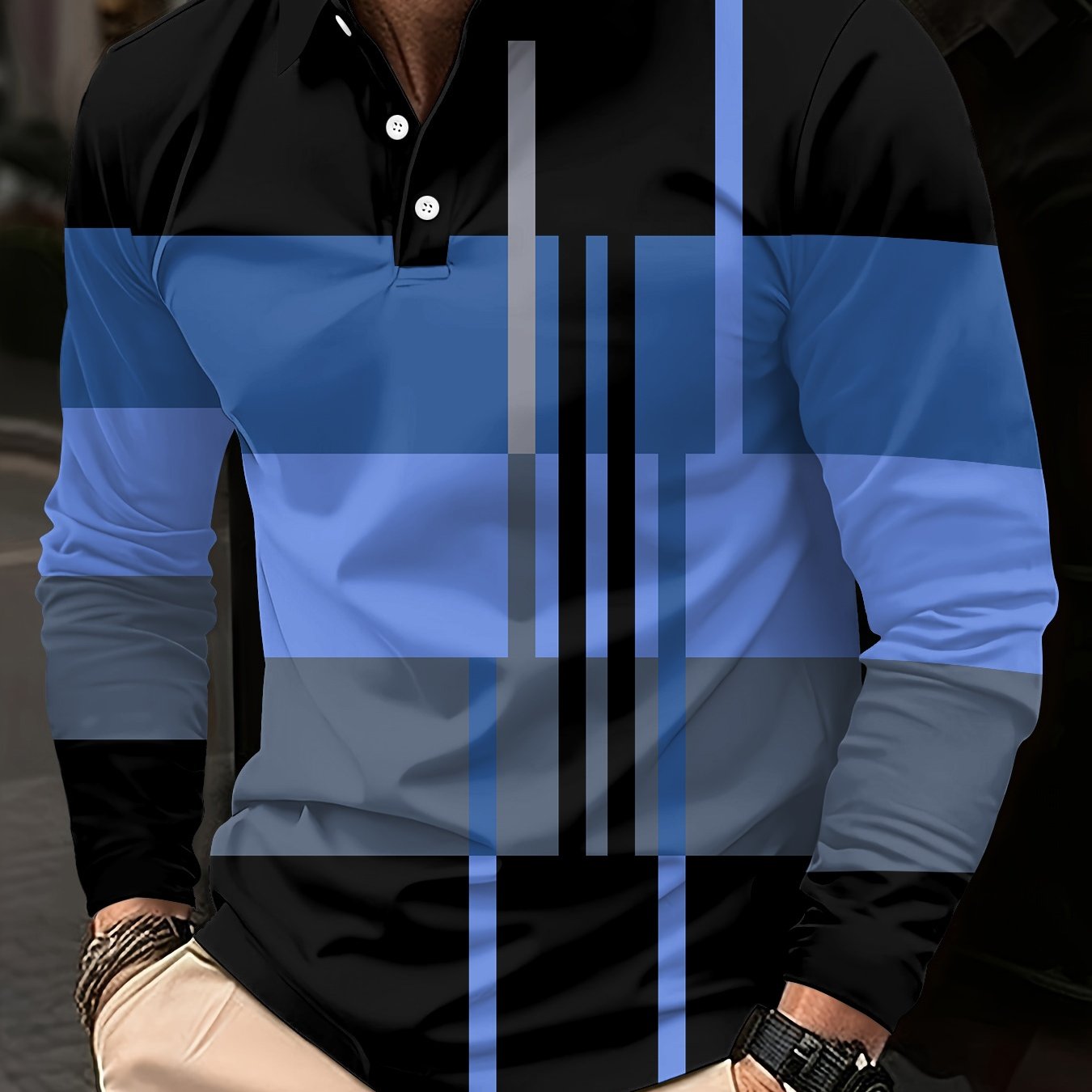 TEMU 남성용 3D 올오버 프린트 긴팔 셔츠 - 버튼 프론트 플라켓 칼라 골프 & 캐주얼 버튼셔츠, 컬러 블록 디자인의 세탁기 사용 가능한 스포츠웨어