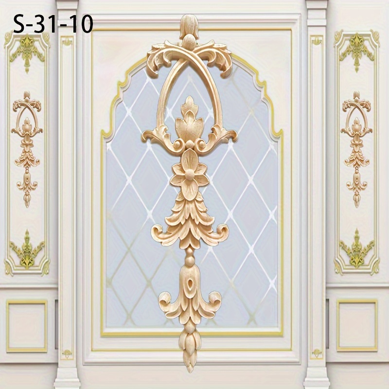 TEMU 홈 데코용 1개 솔리드 우든 조각 인레이 목재 데칼, 도장되지 않은 캐비닛 문 창문 로마 기둥 배경 벽 등에 적합한 DIY 장식