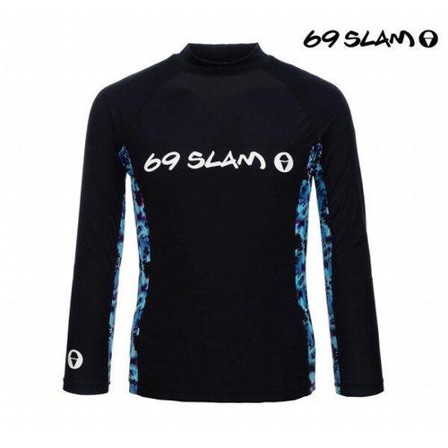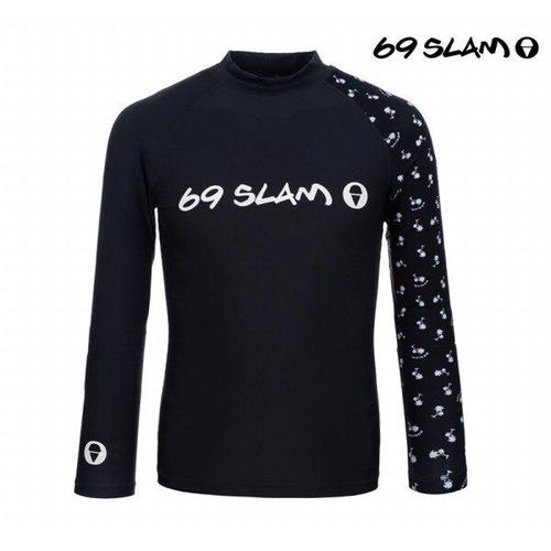[69SLAM][69슬램] 남성 사이드 패턴 로고 래쉬가드_BK