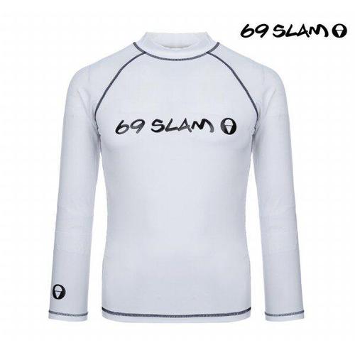 [69SLAM][69슬램] 남성 블랙 로고 화이트 래쉬가드_WH