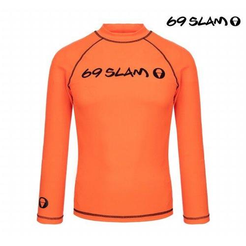 [69SLAM][69슬램] 남성 로고 포인트 네온 오렌지 래쉬가드_N/OR