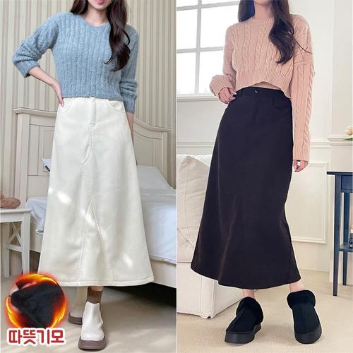 쏘옷 여성용 양털 기모 융털 벨벳 코듀로이 A라인 롱 스커트_88023
