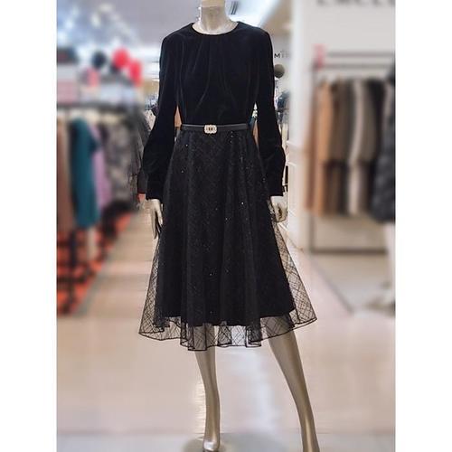 갤러리아_[SI][24F/W] 벨벳 패턴 모크넥 튤 원피스 (SDOAX25190)