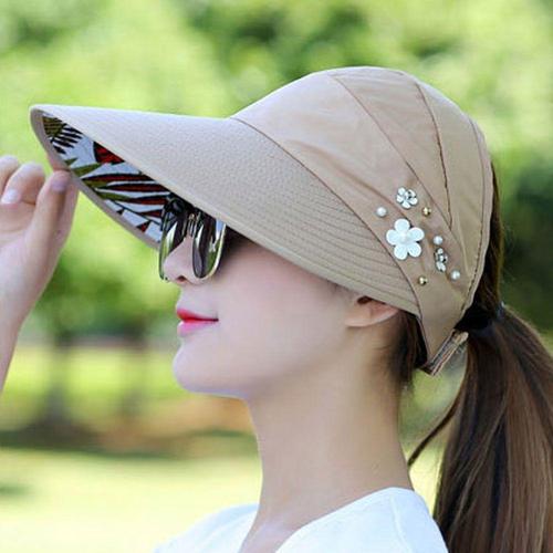 썬캡 플라워 진주 햇빛차단 넓은 챙 찍찍이 밴드 WBBA664