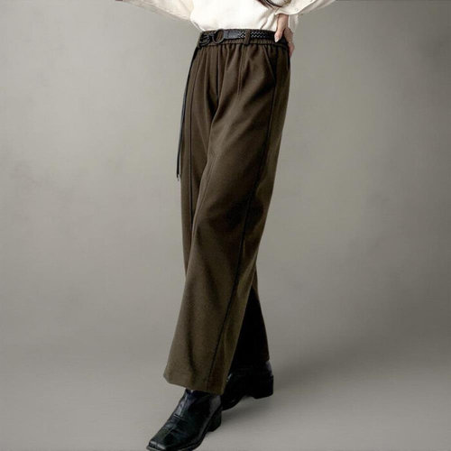[옷자락]여성 겨울 절개 와이드핏 링벨트 밴딩 출퇴근 바지