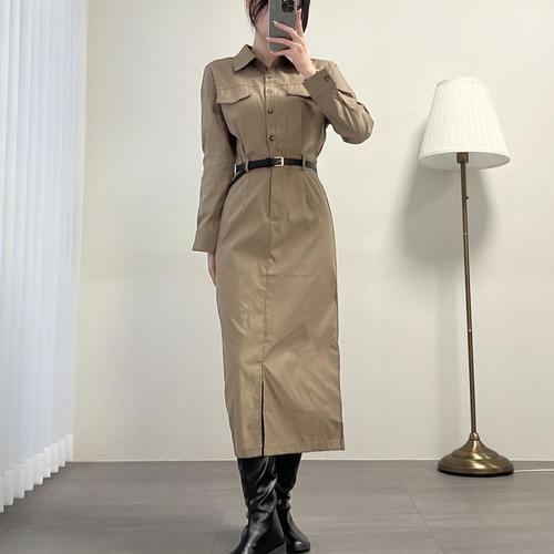 [옷자락]여자 가을하객룩 벨트 반오픈 앞트임 셔츠 롱원피스
