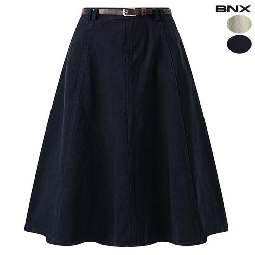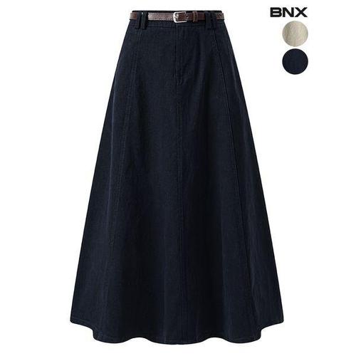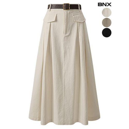 [BNX]여성 벨트 포켓 플레어 롱 스커트