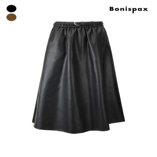 [보니스팍스]위빙 벨트 세트 페이크 레더 롱 스커트 (XPCSK009M0)