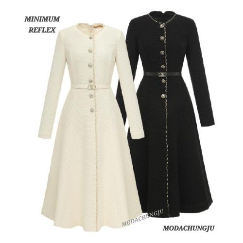 [미니멈]MD 트위드 버튼 벨트 원피스 MD MYDAWO1200BK