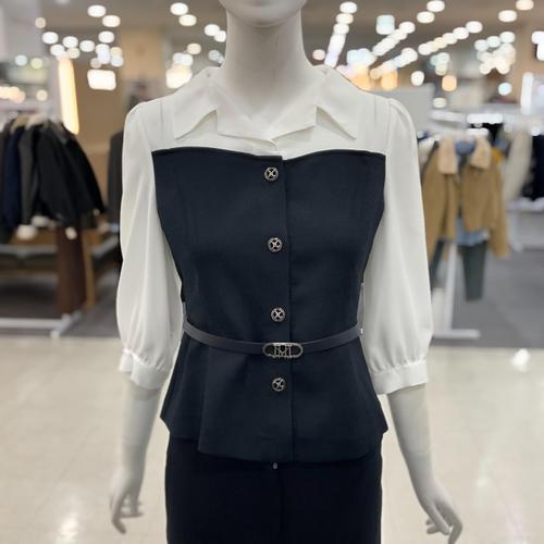 [숲]벨티드 뷔스티에 배색 블라우스(SC3TSM3)