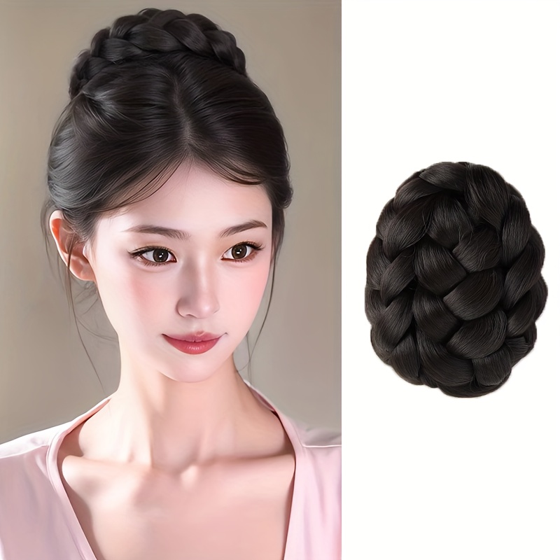 TEMU 중국 스타일 가발 - 치파오와 말 얼굴 스커트 디자인, 우아한 하이 번과 로우 브레이드 헤어스타일, 꽃봉오리 모양 가발 액세서리, 역사 재현,무대 공연용 가발,클래식 중국 디자인,빈티지 헤어스타일,가벼운 헤어피스,합성 가발,코스튬 헤어피스,헤어 액세서리,패션 컬렉터,역사 애호가
