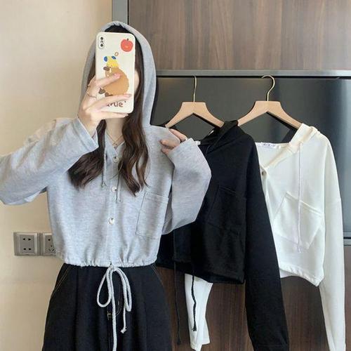 TEMU 그런지 드롭 숄더 후드 가디건, 봄 & 가을용 Y2K 긴 소매 지퍼 업 가디건, 여성 의류