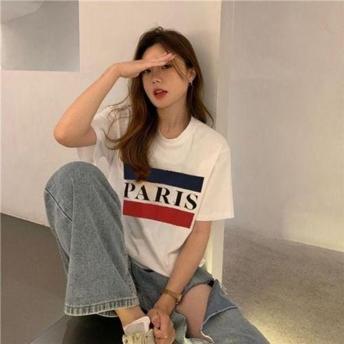 [에이치플러스몰]100 보세 데일리 오버핏 순면 클래식 Paris 여성 반팔