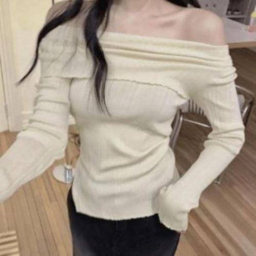 TEMU 여성용 캐주얼 솔리드 컬러 오프숄더 긴팔 티셔츠