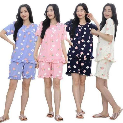 [셀러허브_여성트랜드패션]Rly 여성 반팔 반바지 여름 잠옷 세트 2개 복숭아 오리
