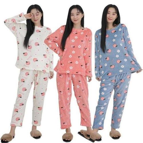 [셀러허브_여성트랜드패션]ONM 여성 골지 수면 복숭아 잠옷 세트 겨울 스판 주