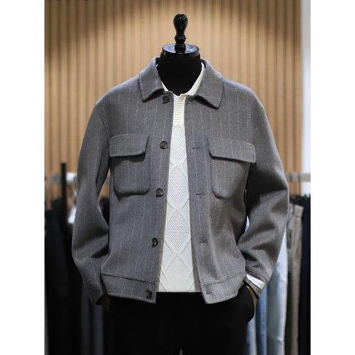갤러리아_BON 그레이 스트라이프 캐시미어 핸드메이드 재킷 BN3FJP410GYT