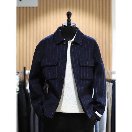 갤러리아_BON 네이비 스트라이프 캐시미어 핸드메이드 재킷 BN3FJP410NYT