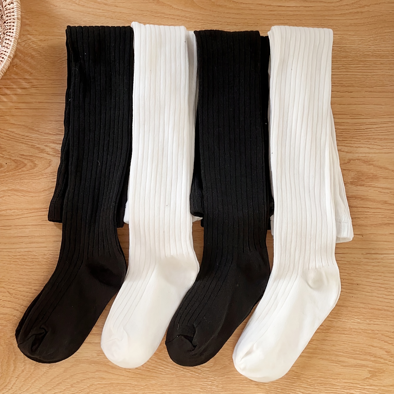TEMU 여아용 흑백 세로 줄무늬 단색 레깅스/타이츠 4개 세트, 사계절 데일리웨어용. 사이즈가 작으니 사이즈 차트를 참고하여 한 사이즈 크게 주문하세요