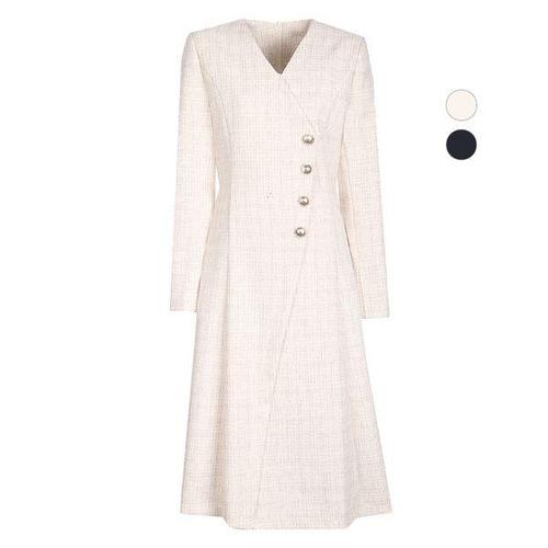 [비비드시크릿가너]여성 골드버튼 봄가을 트위드원피스