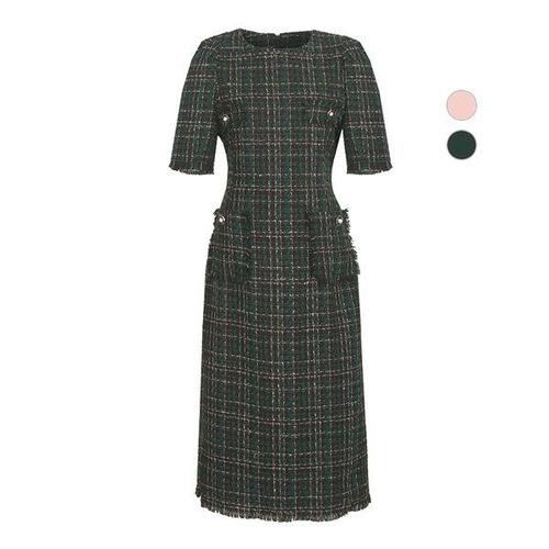 [비비드시크릿가너]여성 봄가을 패치포켓 반팔 트위드 원피스