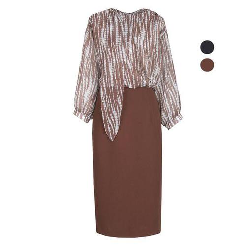 [비비드시크릿가너]여성 에뜨 소매 배색 봄가을 원피스