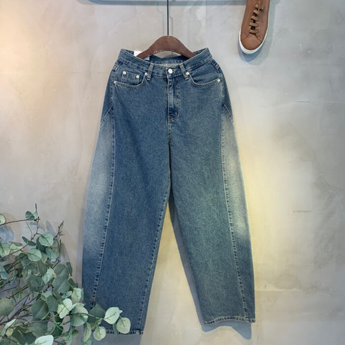 봄신상 여성 밴딩 데님 밑단접이 통 배기핏 청바지 PIC-WPT-20312-연청