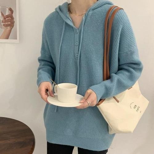 [엄지척]여성 봄 가을 간절기 긴팔 여자 후드 니트 티 블루_19804158_667501
