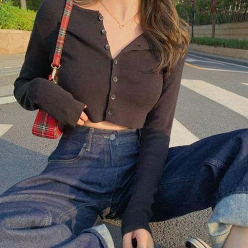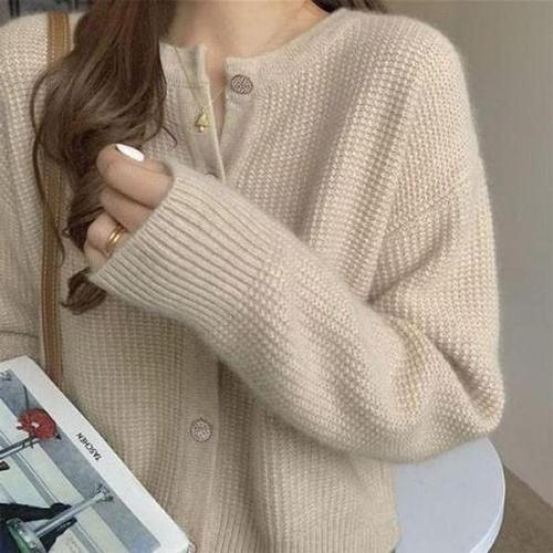 [셀러허브_여성트랜드패션]ONM 핏 크롭 긴팔 가디건 여성 라운드넥 봄 가을