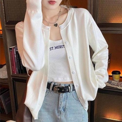 [에이치플러스몰]여성 라운드넥 클래식 심플 가디건 DHHE87 신상 가디건 봄 U넥 dm 여성 롱 라운