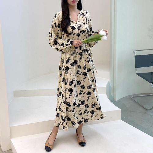 [옷자락] [시즌오프]플라워 끈조절 A라인 퍼프 봄옷 휴가 롱원피스_5