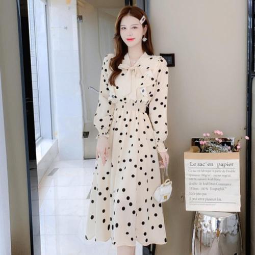 [옷자락] [시즌오프]봄하객 브이넥 레트로 리본 보우 도트 롱원피스_5