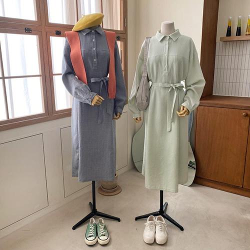 [옷자락] [시즌오프]봄원피스 배색 라운드 포켓 퍼프 무지 롱원피스_5