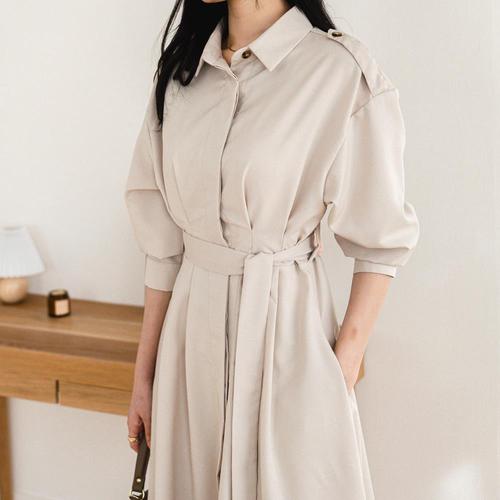 [옷자락] [시즌오프]봄 하객룩 정장 트렌치 오피스 플레어 롱원피스_5