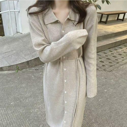 [옷자락] [시즌오프]봄가을 모던 페미닌 여리핏 카라 니트 롱원피스_5