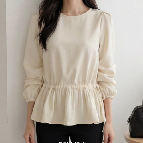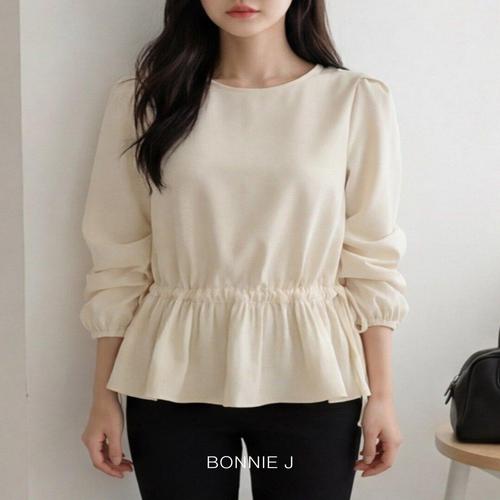 보니제이 / 봄시즌 라운드 페플럼 허리 스트링 퍼프 블라우스 뱃