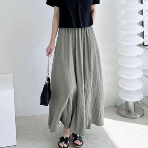 [에이치플러스몰]카키색 베이직 여성 플레어 롱스커트 올데이 봄 여름