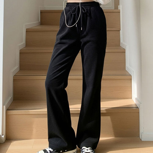 [신상오픈런]여성 프릴 디테일 슬림핏 부츠컷 밴딩 트레이닝 팬츠 가을 면바지