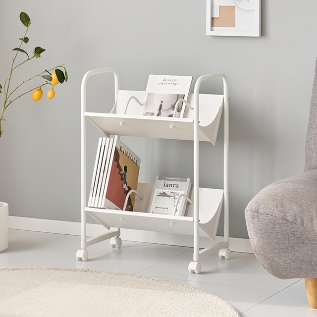 2단 이동식 북 트롤리 사이드 테이블 틈새 미니 선반