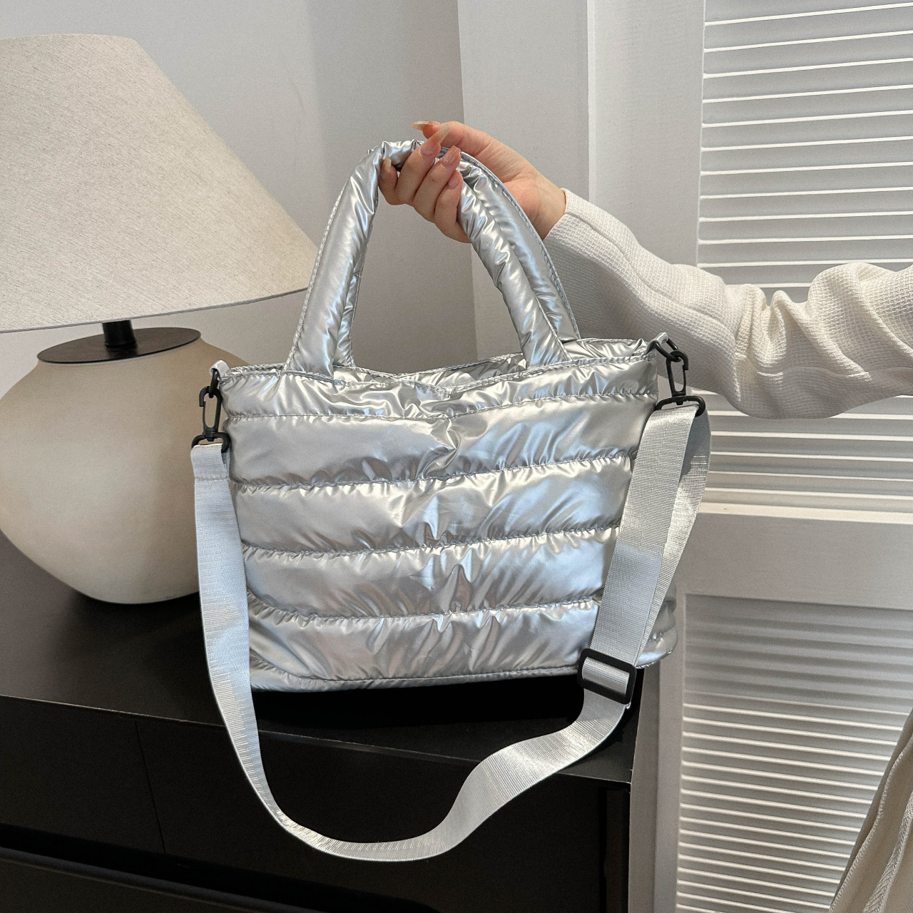 TEMU 세련된 여성 숄더백 1개. 트렌디한 캐주얼 디자인의 단색 스타일. 퀼팅 스타일의 푹신한 바지, 넉넉한 수납 공간, 다양한 포켓이 포함되어 있습니다. 부드러운 지퍼가 특징이며 가을, 겨울에 완벽합니다.|가방|크로스백|보부상가방