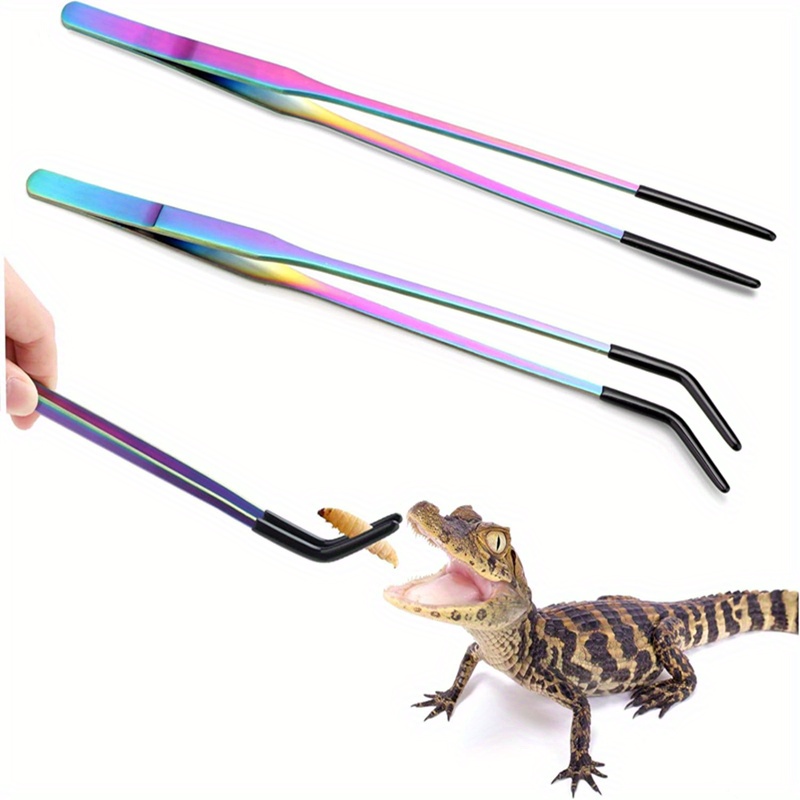 TEMU 2개 세트 고강도 스테인리스 스틸 파충류 급식 집게 - 미끄럼 방지 고무 팁 포함, 도마뱀/거북이/두꺼비용 집게, 수족관/테라리움/수염 드래곤 관리용, 물림 방지 쉬운 세척 파충류 핸들링 집게