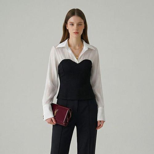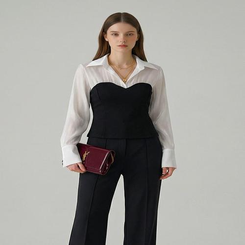 [드레스허그]시스루 셔츠 레이어드 뷔스티에 블라우스