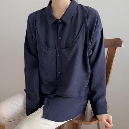 [신상오픈런]여자 레이어드 뷔스티에 빅사이즈 루즈핏 가을 셔츠